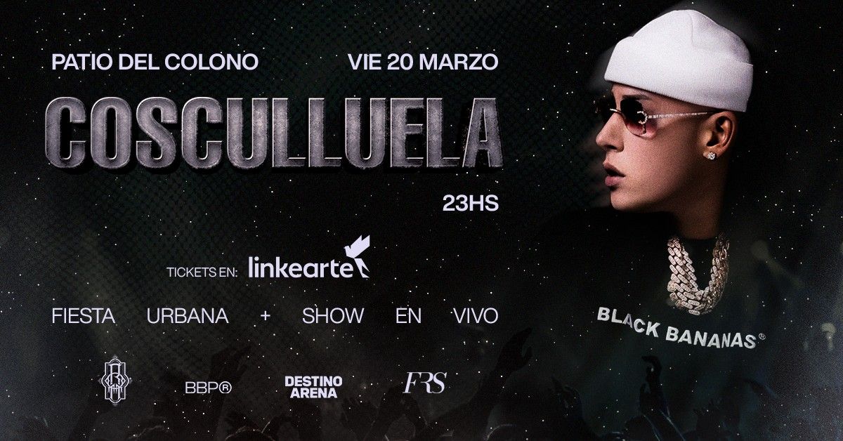 Este 20 de marzo, la noche se prende con Cosculluela, la fiesta de música urbana que marca el pulso del momento, junto a nuestros DJs residentes y un show en vivo único.