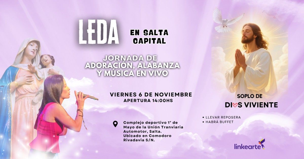 Te invitamos a vivir un día de fe, música y esperanza en un encuentro especial de oración y alabanza junto a Leda.