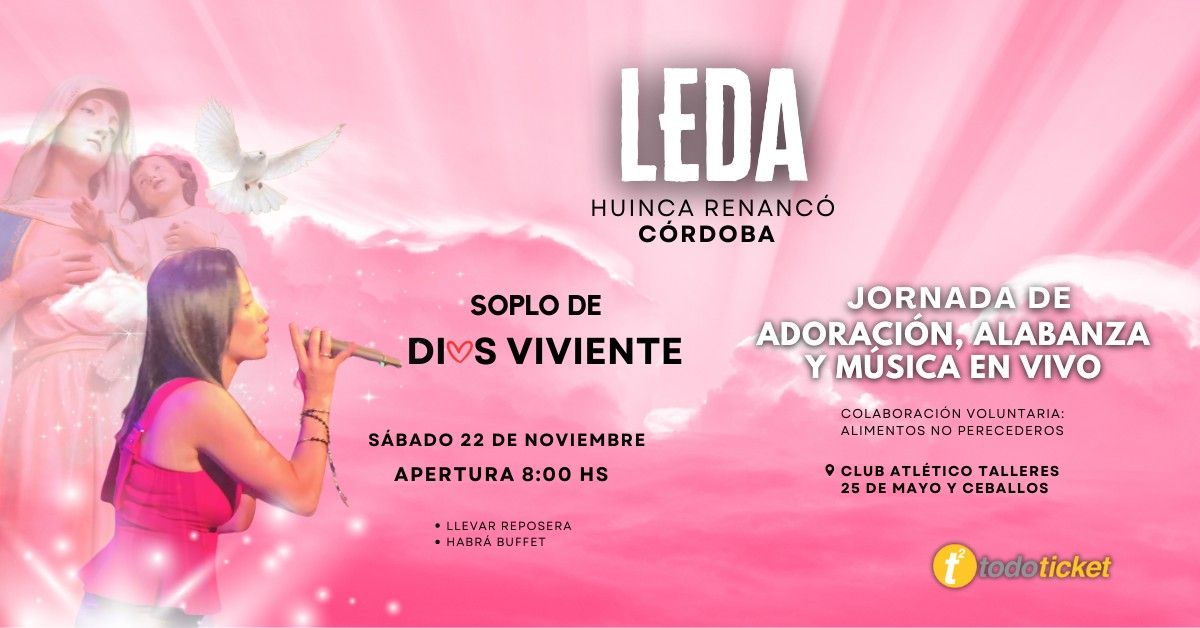 Te invitamos a vivir una día de fe, música y esperanza en un encuentro especial de oración y alabanza junto a Leda.