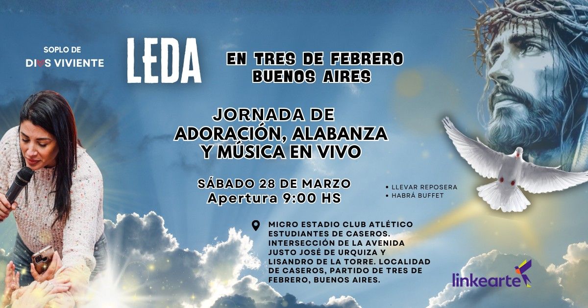 Te invitamos a vivir una día de fe, música y esperanza en un encuentro especial de oración y alabanza junto a Leda.