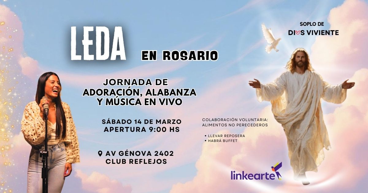Te invitamos a vivir una día de fe, música y esperanza en un encuentro especial de oración y alabanza junto a Leda.