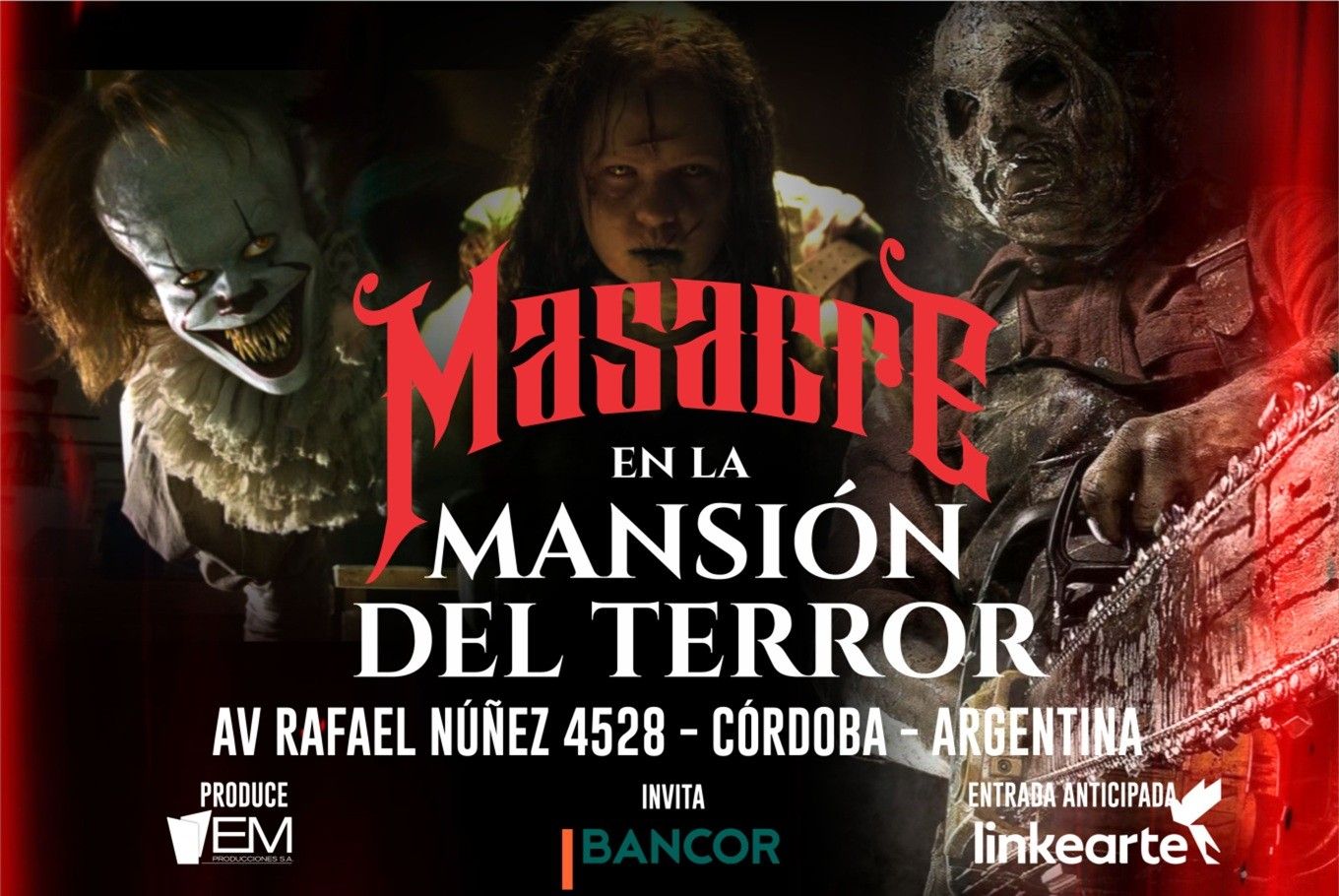 ¡Únete a una aventura aterradora en el laberinto mortal de las películas de terror! Sobrevive a los icónicos protagonistas como Sally Hardesty, Pennywise y Freddy Krueger. Con giros inesperados y salas cambiantes, solo uno podrá escapar. Ve a Av. Rafael Nuñez 4528 y vive esta experiencia por solo $10.000. ¡Compra tus entradas en Linkearte.com y descubre quién sobrevivirá!