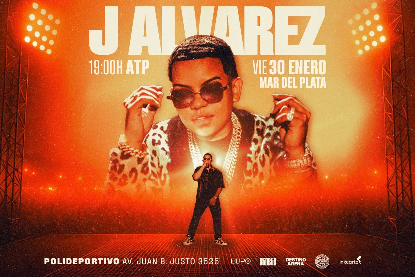🎤 J ÁLVAREZ EN MAR DEL PLATA – BLINBLIN Y DESTINO ARENA presenta un evento imperdible el viernes 30 de enero en el Polideportivo Islas Malvinas. El ícono del reggaetón ofrecerá una producción internacional, interpretando todos sus hits en una noche de ritmo, luces y energía. Con DJs invitados y una experiencia única para toda la familia. Evento ATP - Apto para todo público. Entradas limitadas, ¡asegurá la tuya ahora!