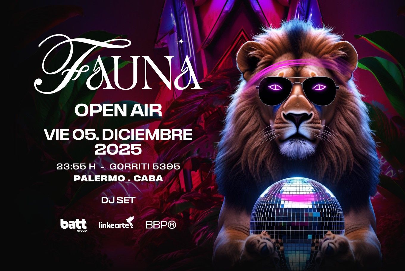 La naturaleza se adueña de la ciudad en Fauna, un evento único el 5.12 en Gorriti 5395. Experimenta una fusión de luz, sonido, arte y energía que transforma el espacio en un nuevo ecosistema. ¡No vengas a mirar, vení a sentir!