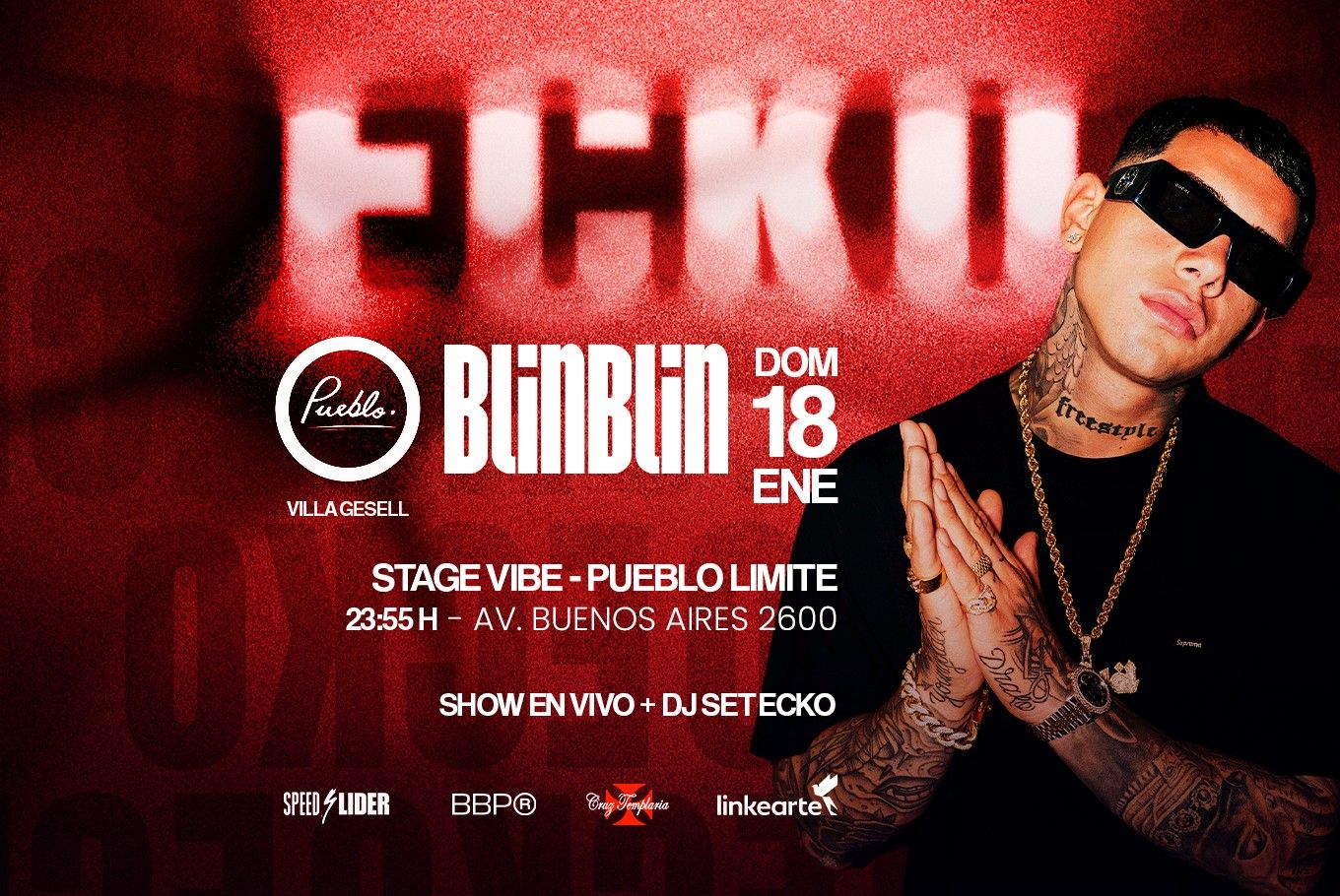 ¡ECKO en Pueblo Límite! El 18 de enero, vive una noche histórica con BLINBLIN en la costa. Disfruta del mejor reggaetón, trap y perreo en una producción única llena de energía. ¡Entradas anticipadas ya disponibles! ⚡️