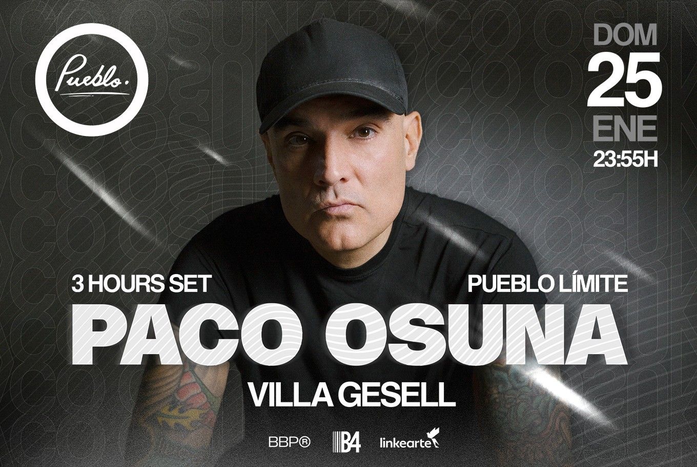 El 25 de enero, Paco Osuna se presenta por primera vez en Pueblo Límite gracias a BlinBlin. Disfruta de un set exclusivo en la pista Tech y de una vibrante pista de Reggaetón con un artista sorpresa. Prepárate para una noche épica con sonido internacional en la costa. Mesas disponibles al 1165857775.