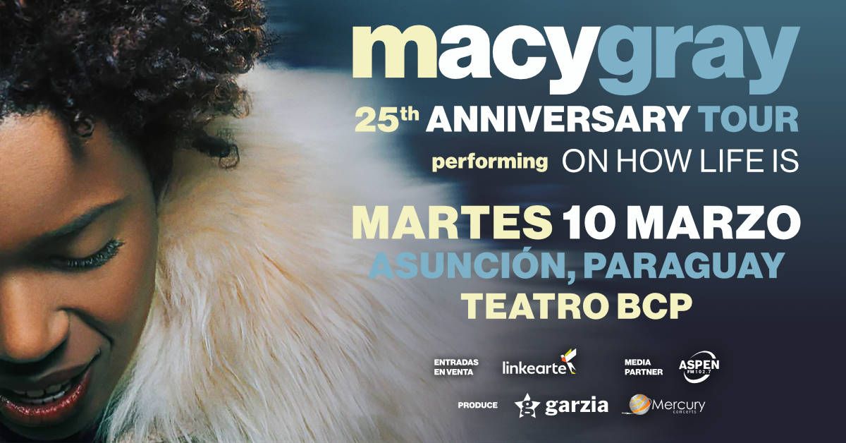 La icónica voz del soul y R&B Macy Gray llega por primera vez a Paraguay con la gira que celebra los 25 años de su álbum debut On How Life Is, uno de los discos más influyentes de finales de los 90 y ganador de múltiples premios alrededor del mundo.